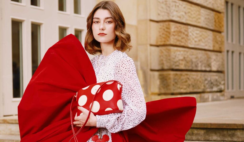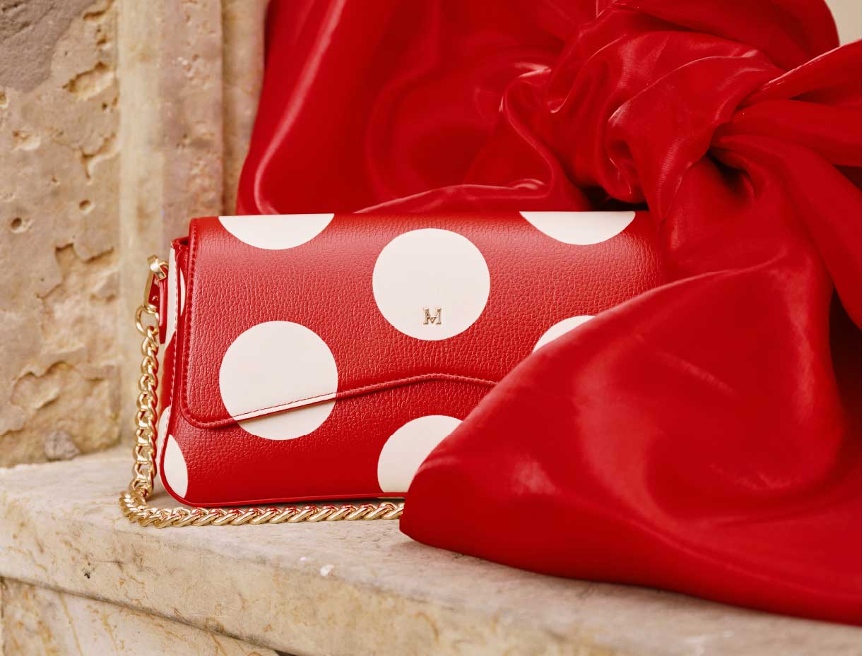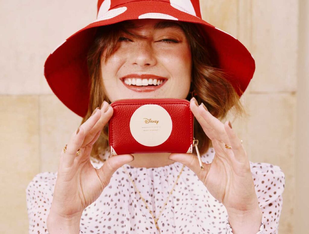 Una colección inspirada en la feminidad auténtica y alegre de Minnie Mouse, donde cada bolso, billetera o accesorio está diseñado para mujeres que iluminan con su autenticidad y caminan con gracia, dejando huella donde van.