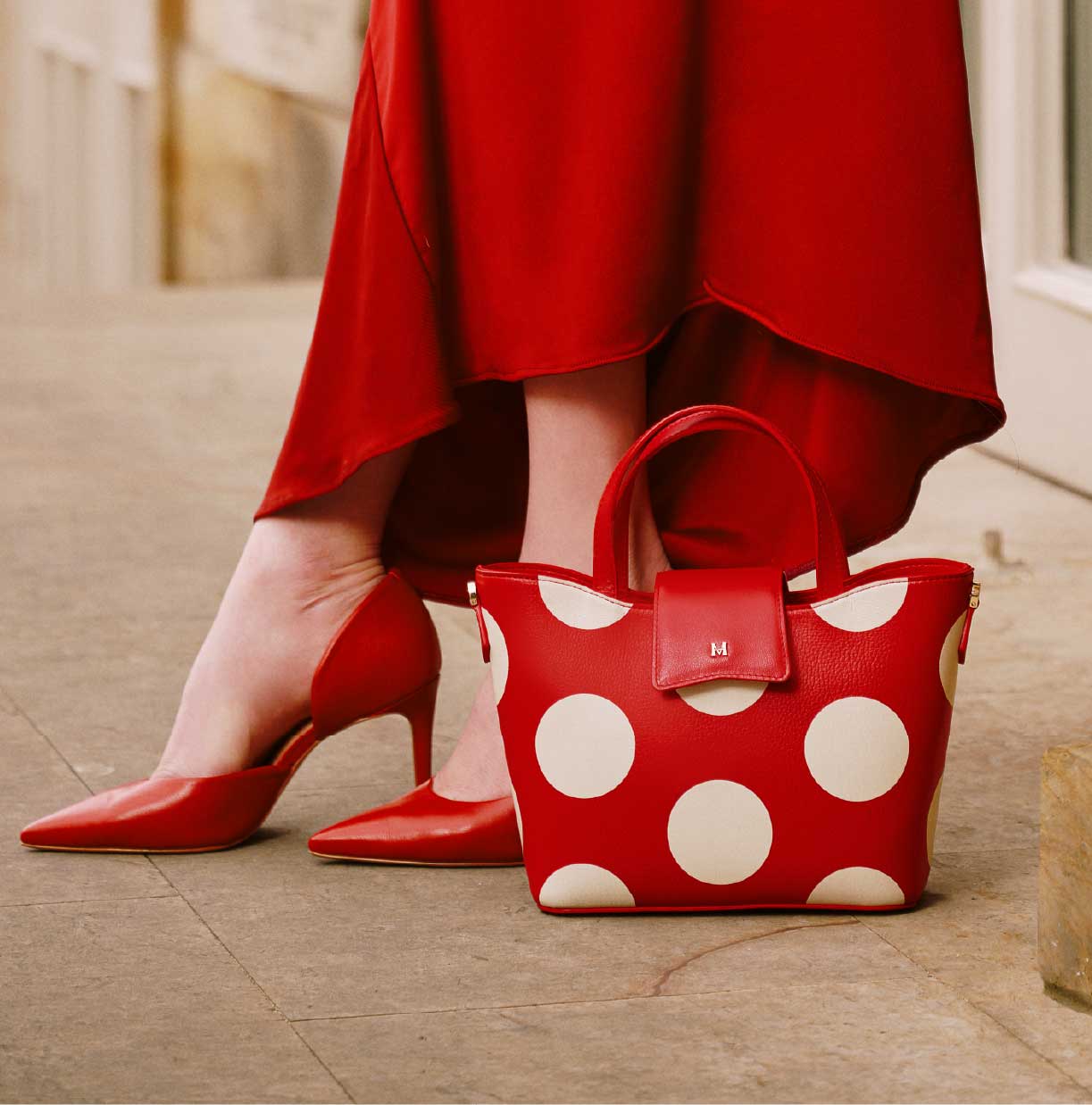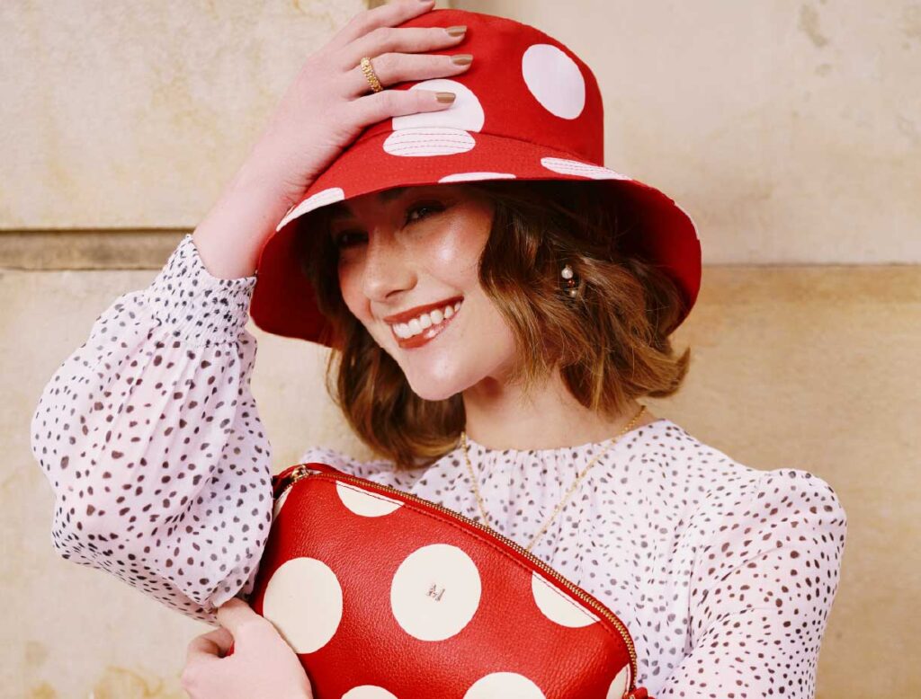 Los lunares blancos sobre rojo profundo lo convierten en ese toque atrevido que transforma cualquier outfit.