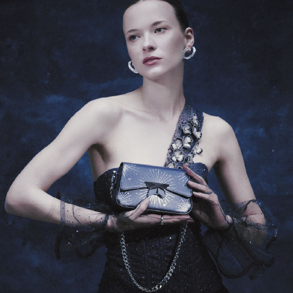 Es el color de la intuición, del misterio, de ese preciso punto del firmamento en el que una estrella decide brillar. Sobre él, la fantasía se despliega con naturalidad: cada trazo se convierte en constelación; cada detalle, en un destello; cada pieza, en un pequeño universo.