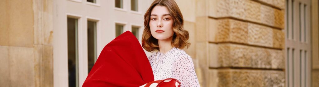 La marca Ivory Atelier, liderada por el diseñador Javier Gómez y conocida por su enfoque en la luz, la feminidad y una paleta de colores suaves que evocan calma y elegancia, aportó su visión para dar vida a nuestro año. Su estilo fresco, detallado y cosmopolita encajó perfectamente con la narrativa de imaginar desde la esencia, aportando piezas que combinan delicadeza y sofisticación en cada trazo.